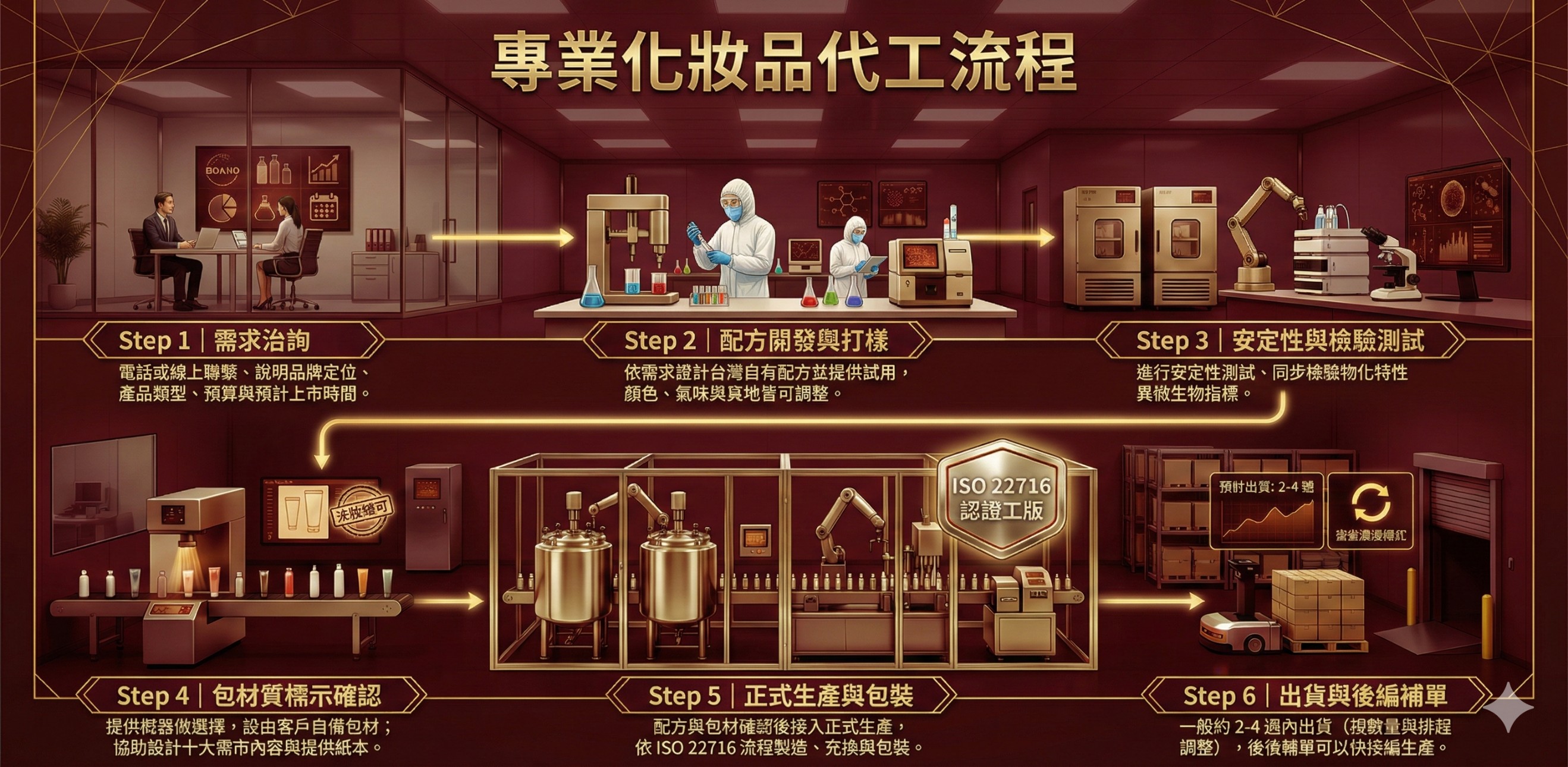 需要 有 ISO 22716 認證工廠與完整文件 支援